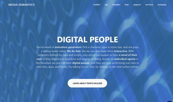 Similar to SitePal, this is a platform that allows you to make a talking avatar for a website. It has both 2D and 3D avatars that can recognize and talk in more or less 24 languages. It follows the process of text-to-speech in animation. This platform makes talking avatars that will be embedded on your website as a video. With this, users will be able to play the video anytime.